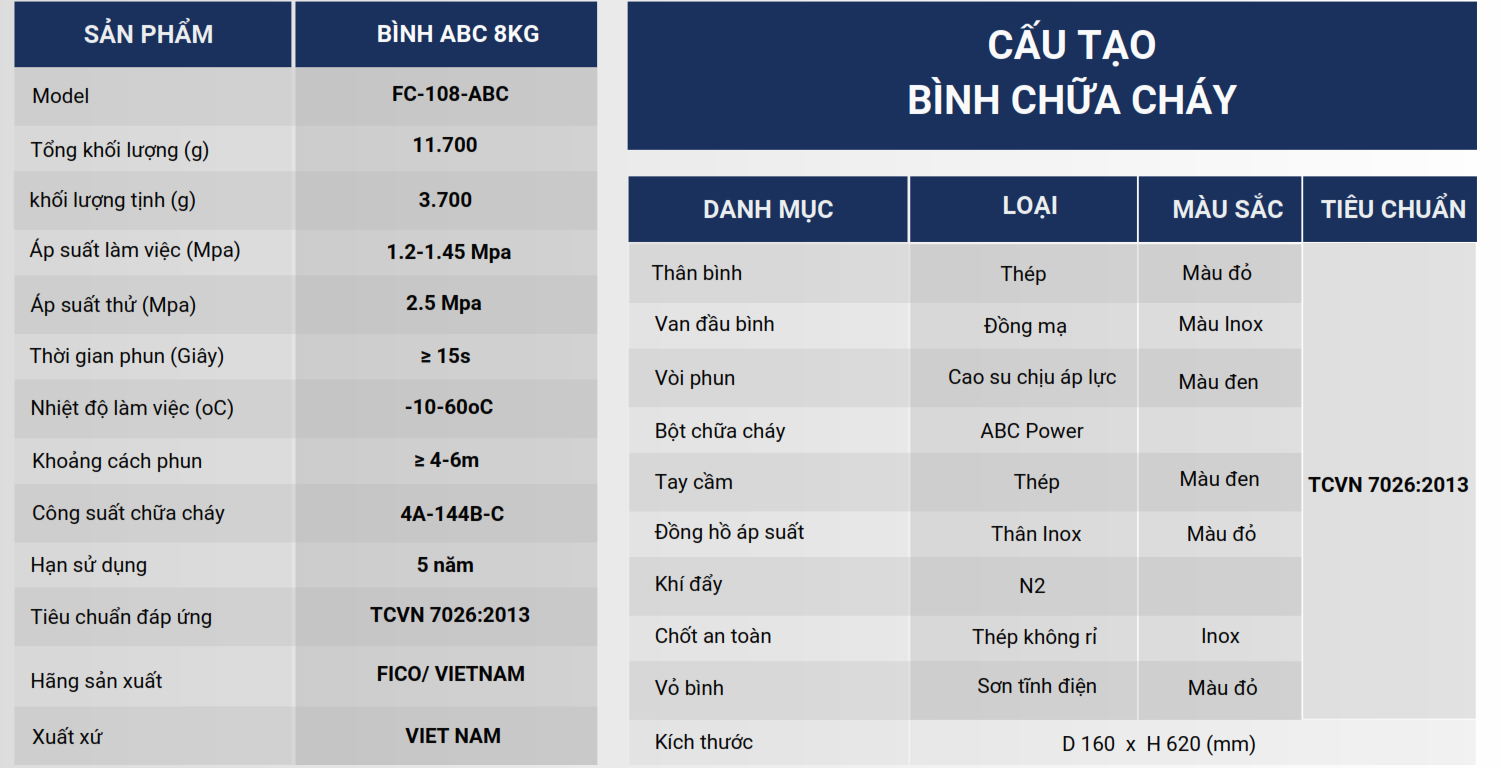 Bình chữa cháy FICO bột ABC - 8KG là thiết bị chuyên dụng có chứa bột chữa cháy loại ABC, được sử dụng để dập tắtv đám cháy từ nhiều nguyên nhân khác nhau như gỗ, giấy, dầu và hợp kim... Thiết kế nhỏ gọn và hướng dẫn sử dụng rõ ràng làm cho bình chữa cháy ABC trở thành công cụ hiệu quả trong việc kiểm soát đám cháy và bảo vệ tài sản và con người.